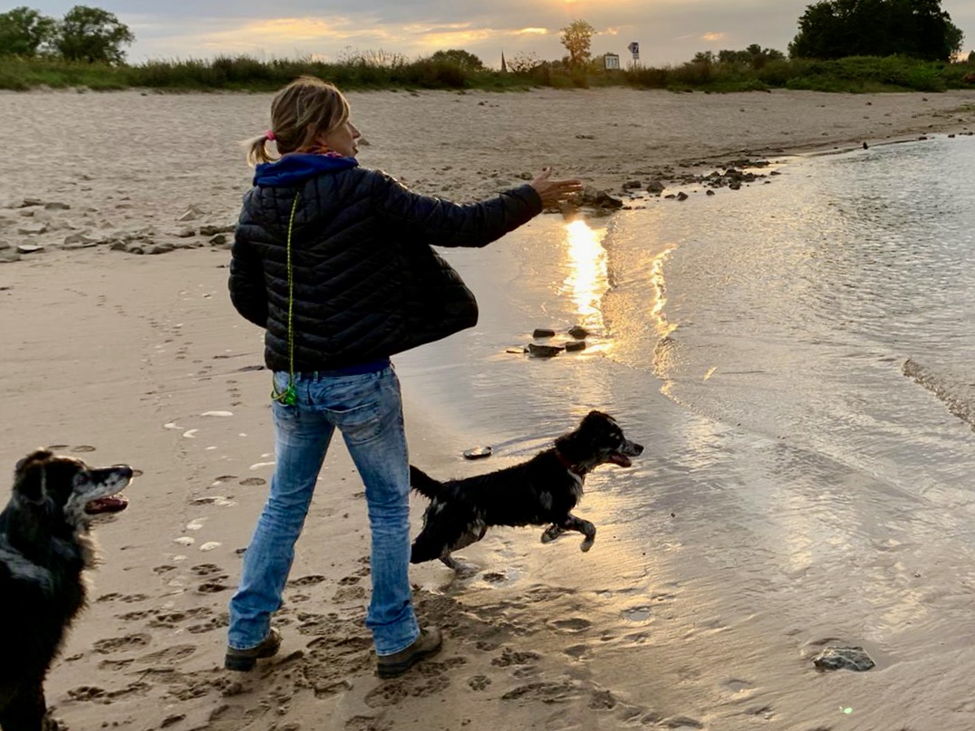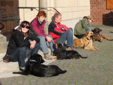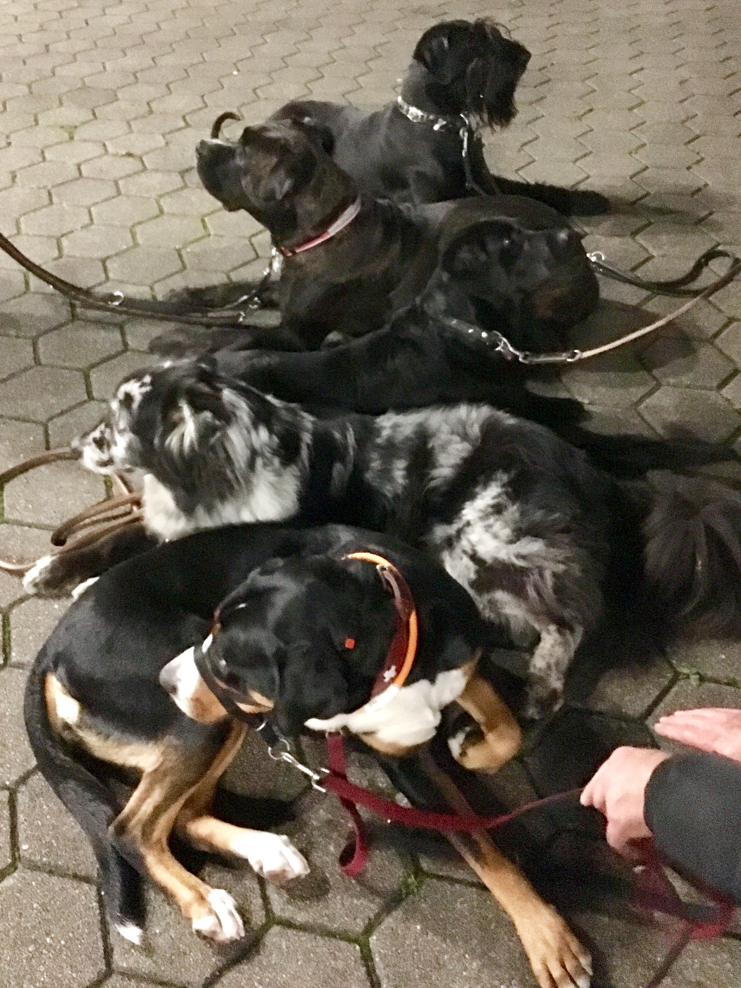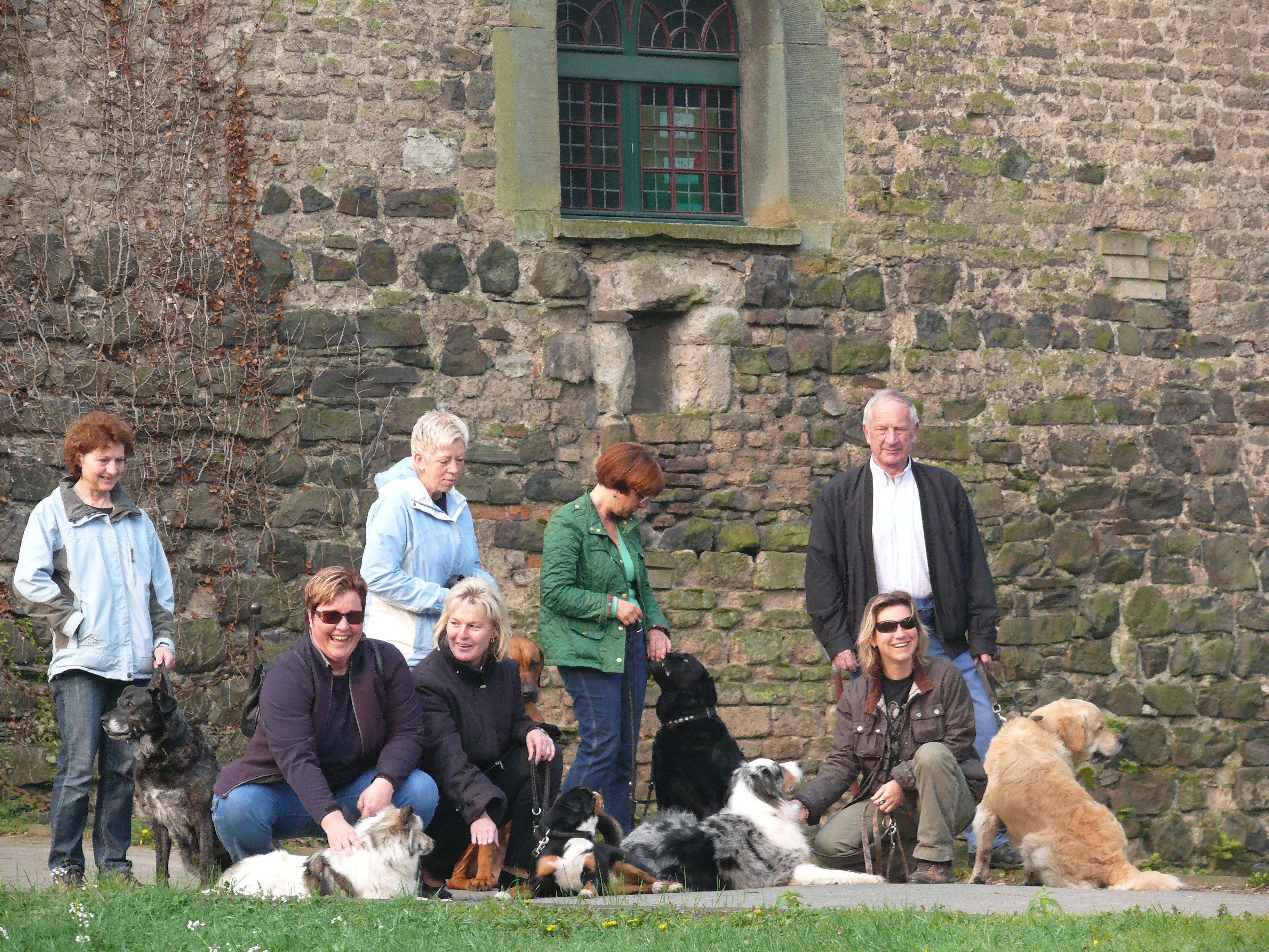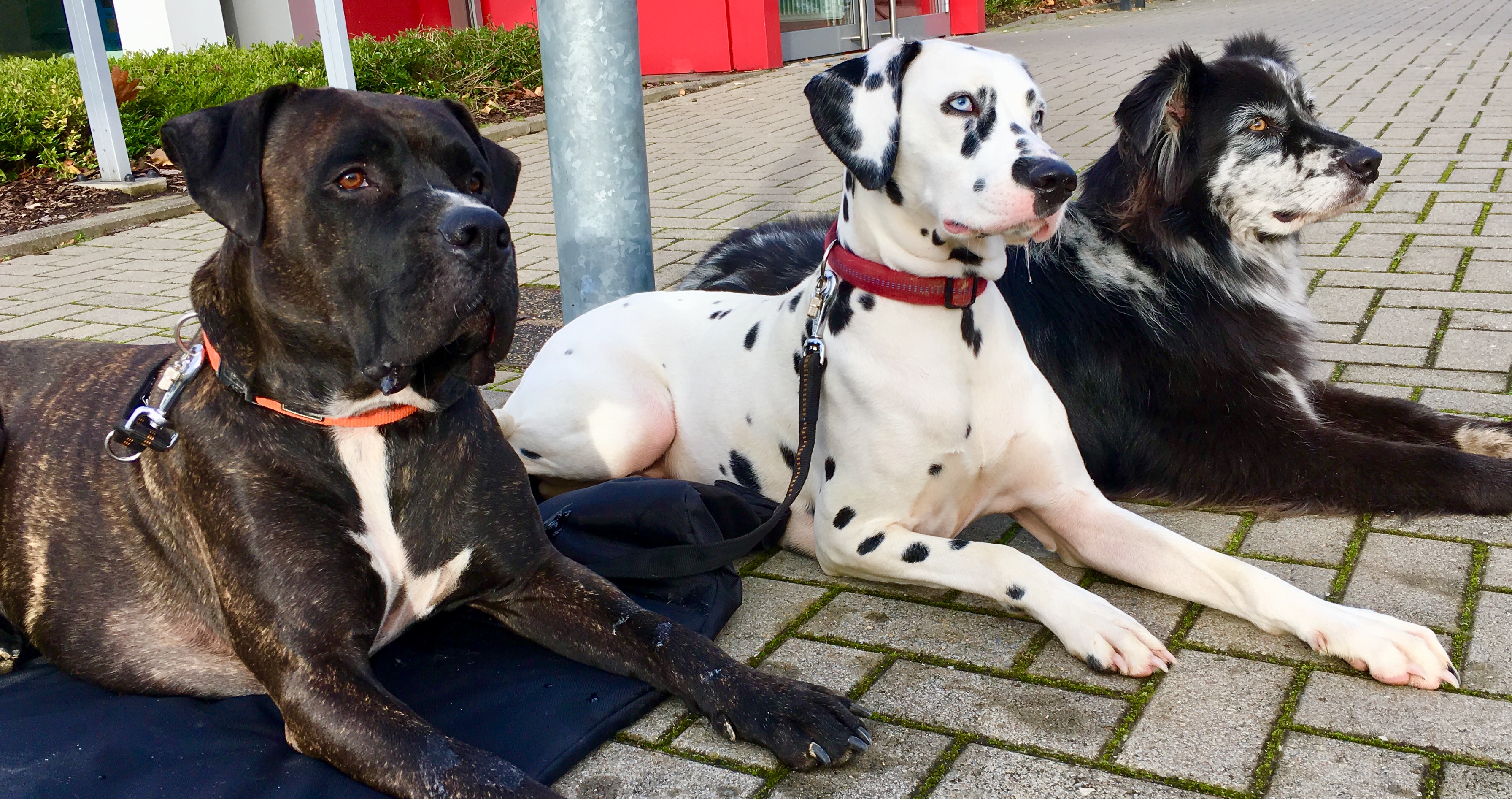 Als zusätzlicher Schwierigkeitsgrad kommt hinzu, dass wir an belebten Orten trainieren, z.B. in der City, Rheinwiese, Tiergehege, Einkaufszentrum, Eiscafebesuch, Wald und Feld, Bahnhof etc.