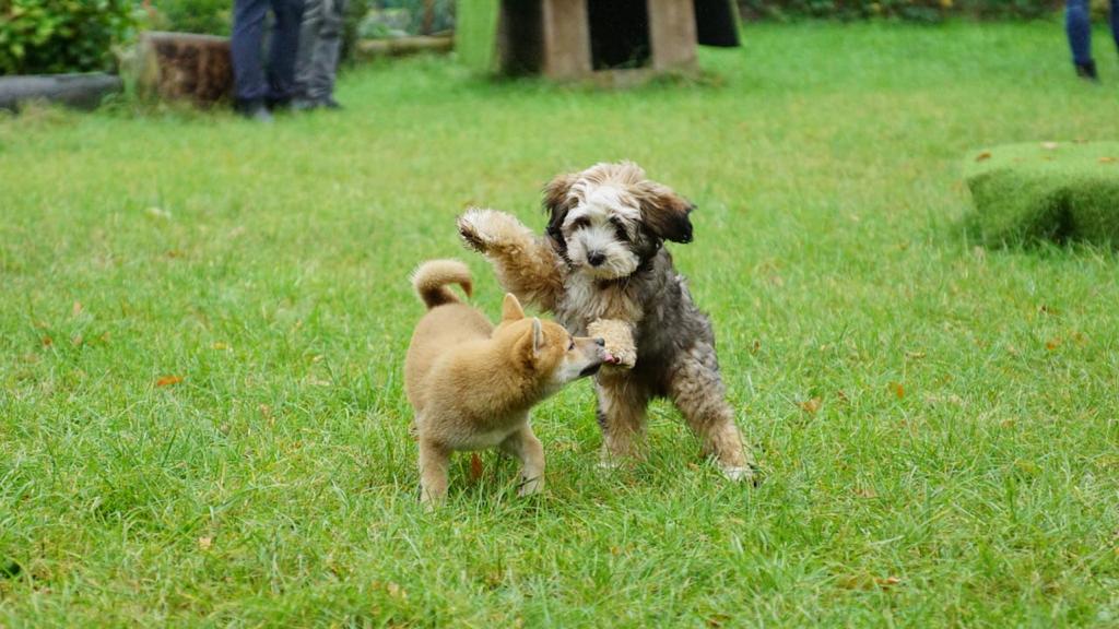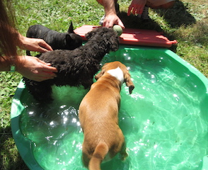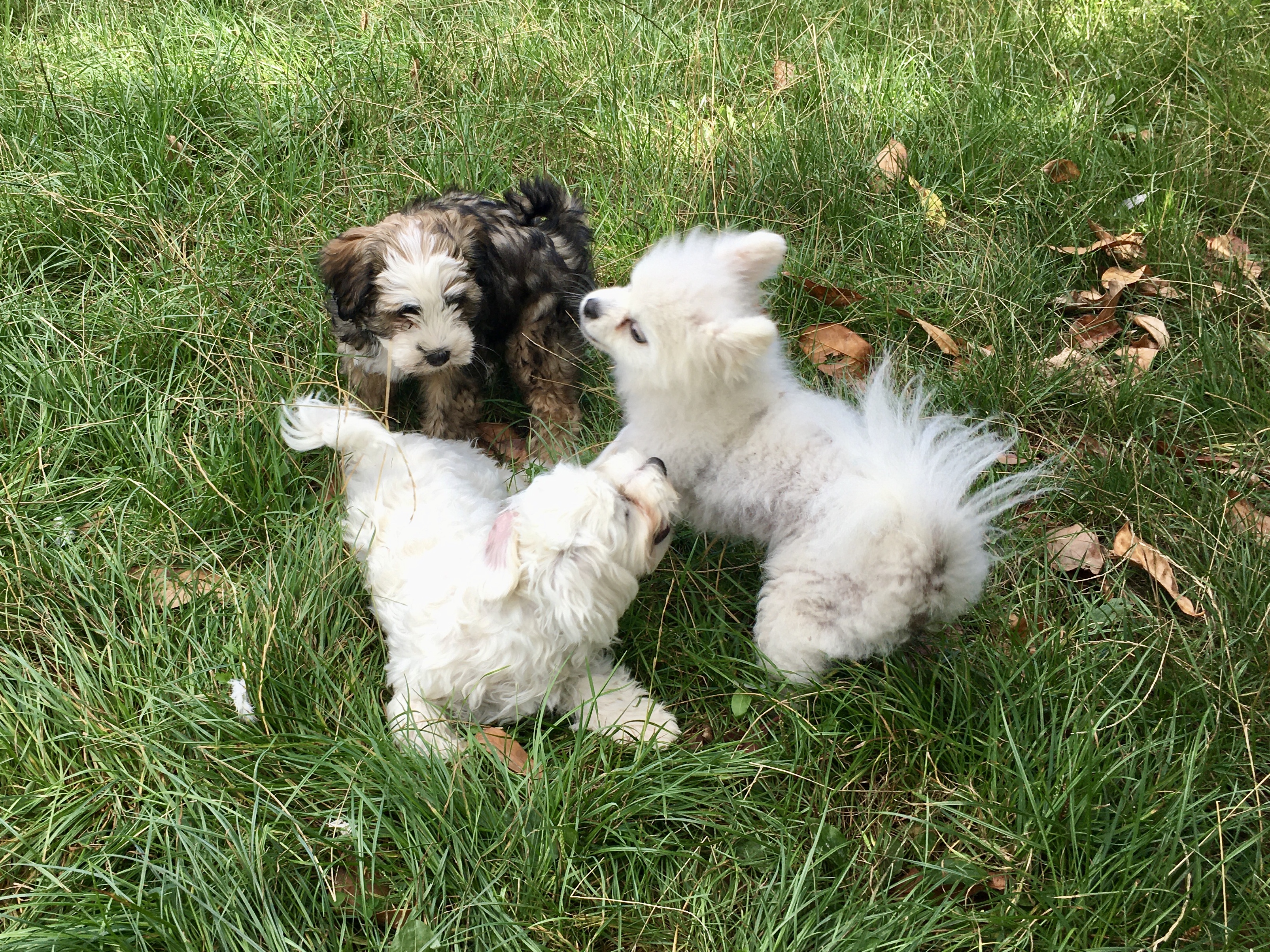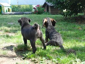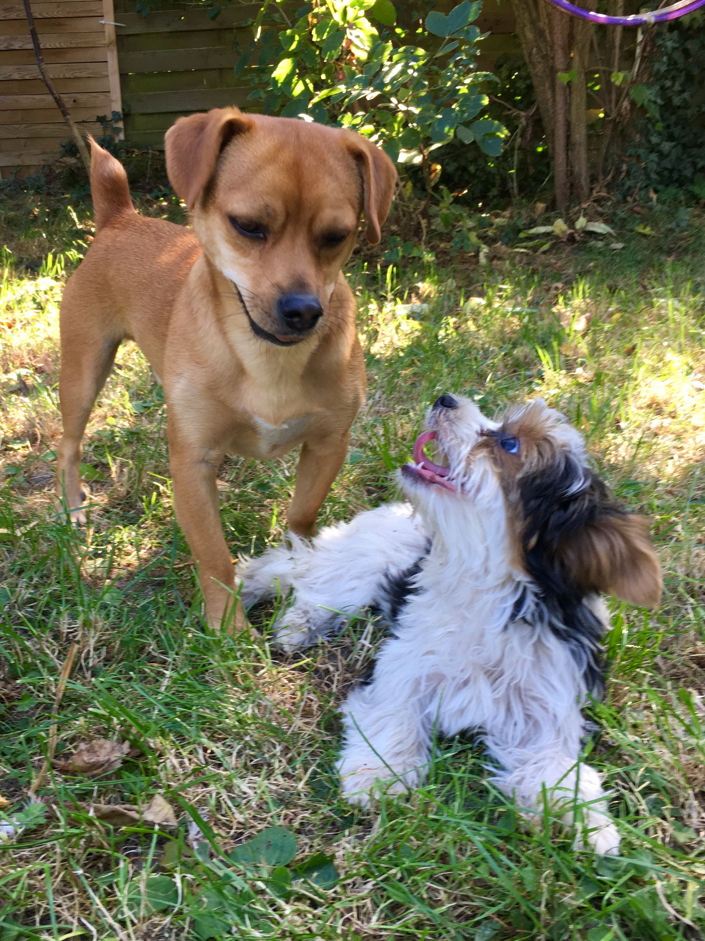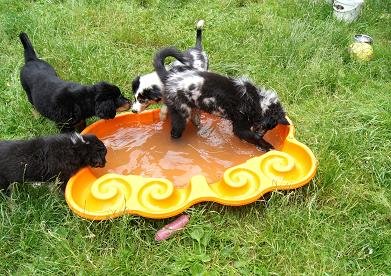 Die Hundekinder dürfen sich relativ frei entfalten, dazu gehört auch mal eine kleine Zankerei. Daraus lerne die Kleinen, beim nächsten mal umsichtiger zu agieren. Sie werden aber keinesfalls sich selber überlassen. Welpen können nicht alles alleine regeln. Mobbing wird nicht geduldet! Unsichere Hundekinder werden gestärkt, zu selbstbewusste Welpen lernen, vorsichtiger miteinander zu sein.