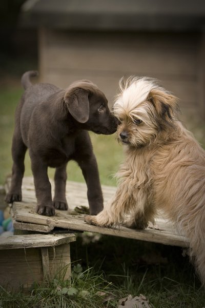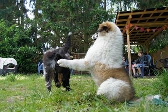 Frisch verliebte Welpenmamas und -papas lernen, dass manchmal ein aktives Eingreifen nötig ist. Auch dass will gelernt sein....über den eigenen Schatten springen...